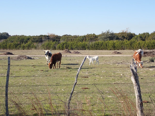 We've finished our exploration of Texas' Hill Country. I can't say that I am overly impressed. While we climbed a good many hills, we were not rewarded with expansive views from the tops. I am trying to imagine what this looks like when it is green and filled with wildflowers; in February it is gray and barren. We enjoyed our time in Gruene and Fredericksburg and perhaps a return trip with a car to see other historic towns in the area is warranted. And to visit the state parks we bypassed because we're old farts who didn't want to camp in the cold.